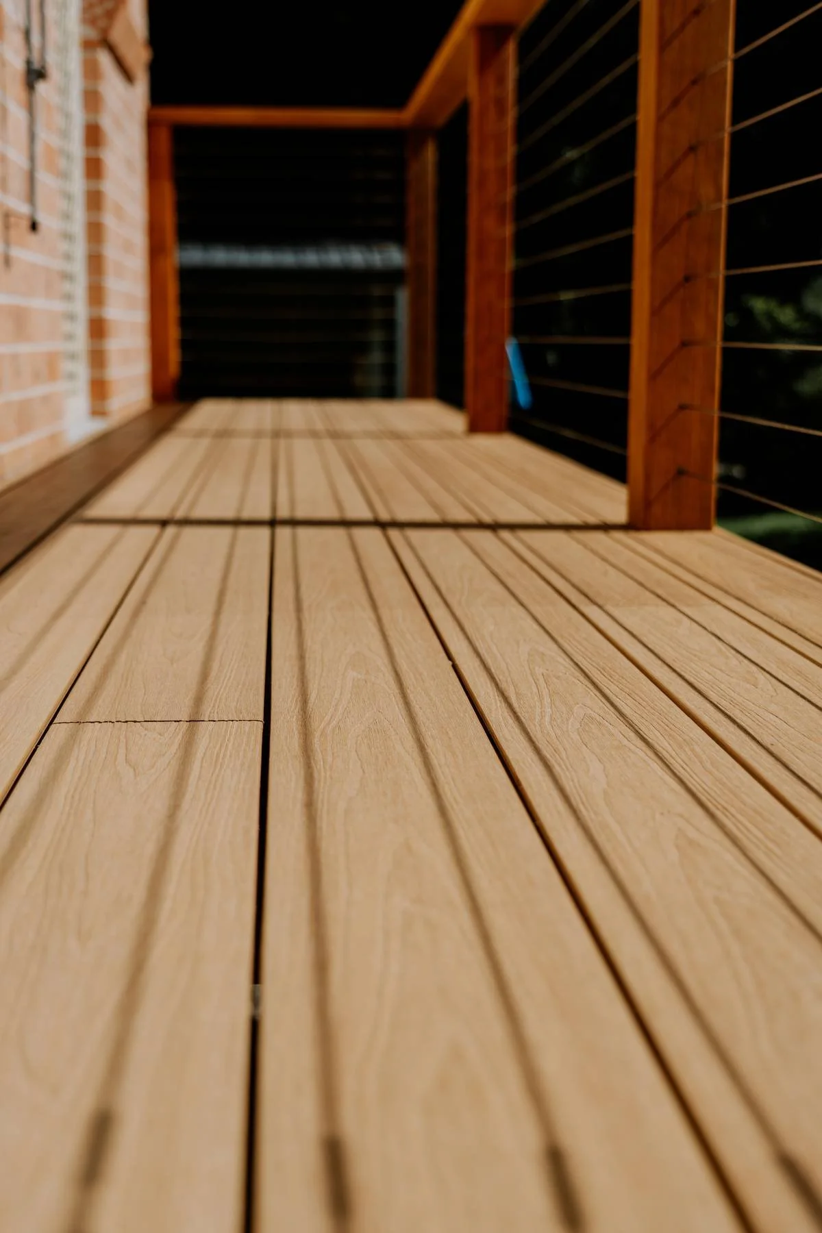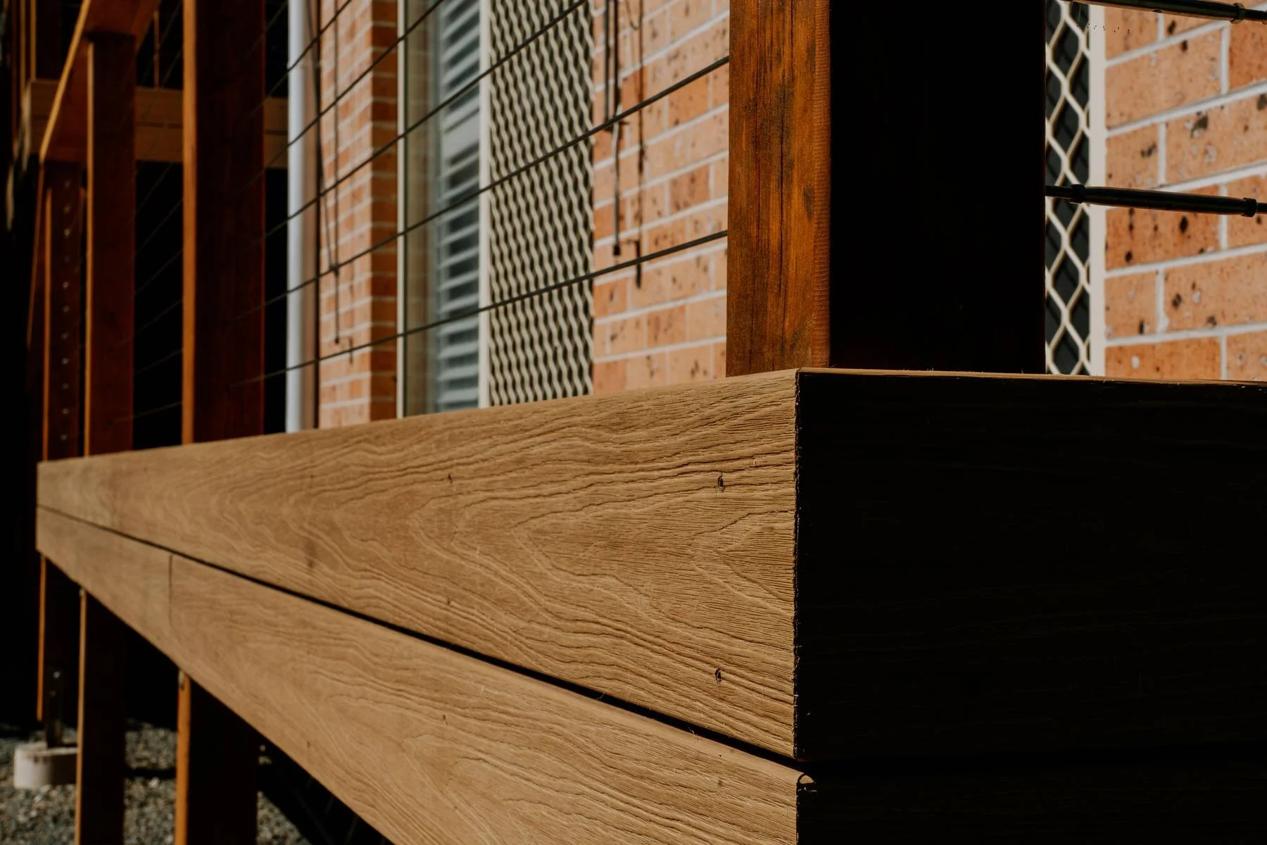 Beautiful all Australian blackbutt frame work in diggers beach 🏝️ topped with @newtechwoodaustralia composite decking in the blackbutt colour. Came up an absolute treat. Stainless steel wire balustrading to set it off!